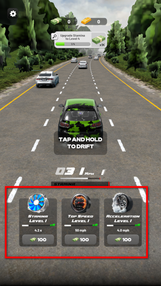 接下来,长按屏幕便可开始驾驶,掌握好油门与刹车的使用,熟悉车辆的操控感,提升自己的驾驶技巧。