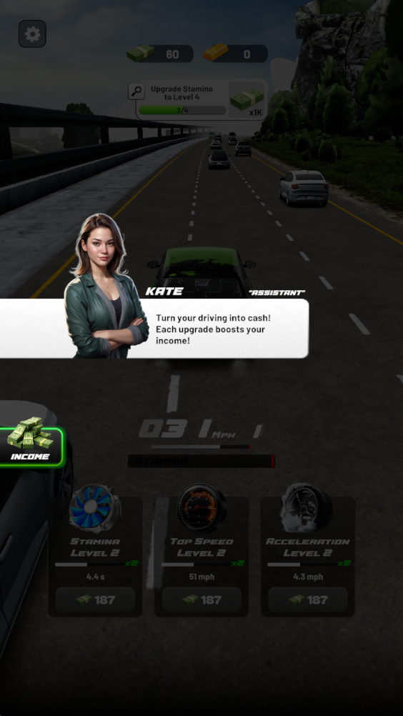 在比赛过程中,通过漂移和超车等技巧赚取更多的钱,完成挑战后可以获得丰厚的奖励,用于进一步的车辆改装。