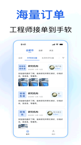 在首页点击发布维修订单,填写仪器故障描述及联系方式,提交后系统会自动匹配合适的工程师。