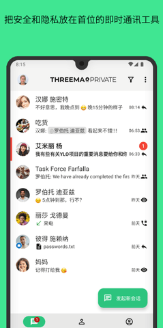 threema最新版本是一款以隐私为核心的即时通讯软件,专为安卓设备用户设计,提供安全、可靠的聊天和通话服务。在数字交流中确保用户的隐私不被侵犯,允许进行私密的信息交流与互动,充分保障信息安全。作为一款强调隐私保护的软件,Threemaapp突破了传统通讯工具对用户个人信息的依赖,以安全和匿名为设计理念,构建出一整套私密通讯系统。