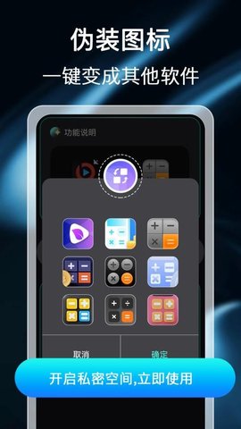 若需进一步增强隐私保护,可进入设置 - 图标伪装板块,选择目标伪装图标样式并软件。用户还可以创建私密图库,上传图片并开启加密保护,确保隐私信息的安全。