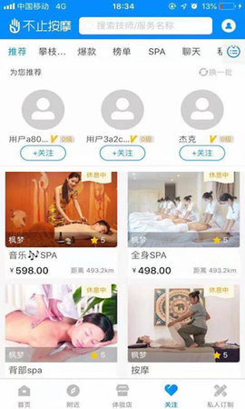 在本站下载并安装不止按摩软件后,可通过注册或登录进入主界面,浏览各类按摩服务及技师信息。