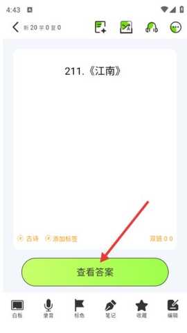 4、在古诗卡片学习页面,可查看古诗题目进行记忆训练,点击【查看答案】按钮,可查看该古诗的具体内容。