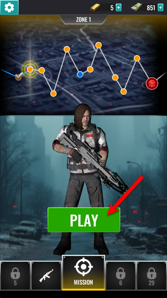 2.通过滑动屏幕的方式将准星对准僵尸。