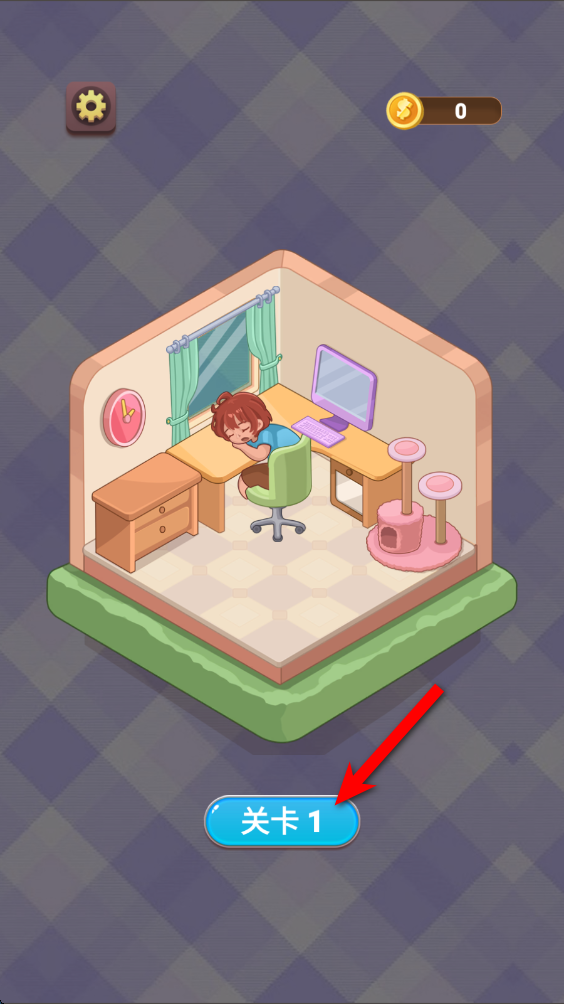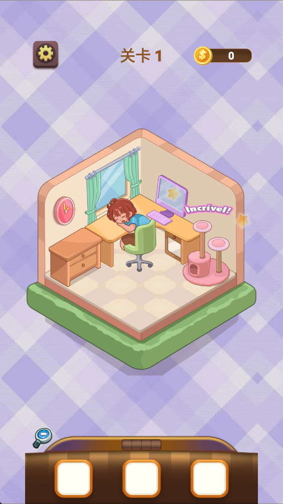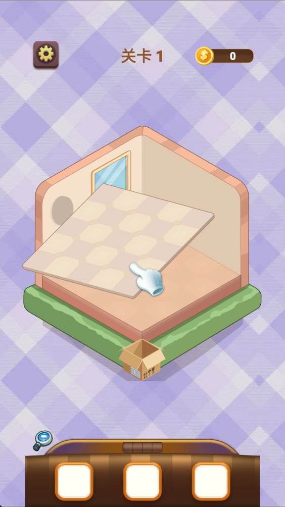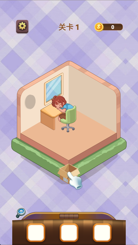 在每个关卡中,会看到一个待翻新的房间,点击箱子可以拿出所需的物品,准备进行布置。