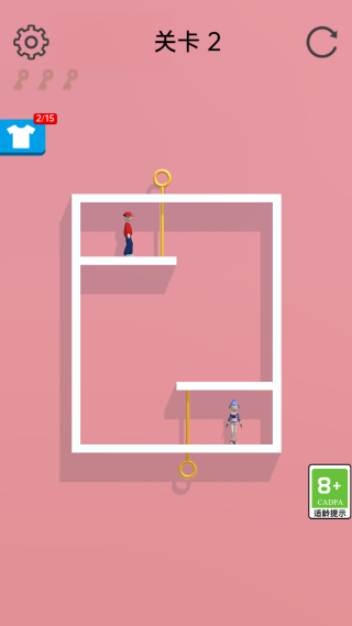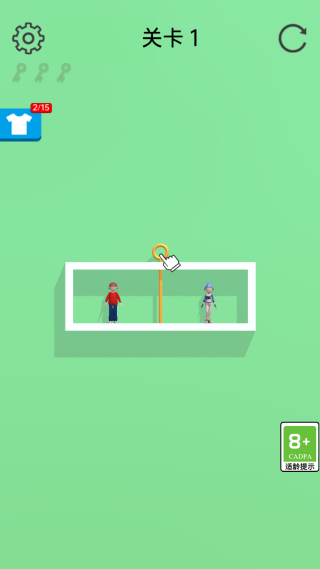 进入游戏后,将面对第一关的挑战,主要通过拔出插销来帮助情侣顺利见面。仔细观察每个插销的作用,确保操作的顺序正确。