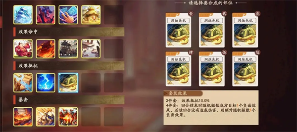 首选:洞烛先机四件套(解除负面状态)+生命两件套。