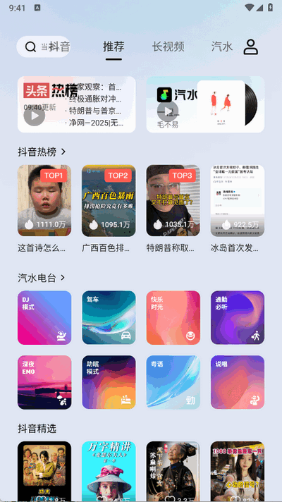 多元内容整合:将抖音短视频、西瓜视频、头条音频以及汽水音乐等多种内容资源高效整合,能够享受丰富多彩的娱乐体验。