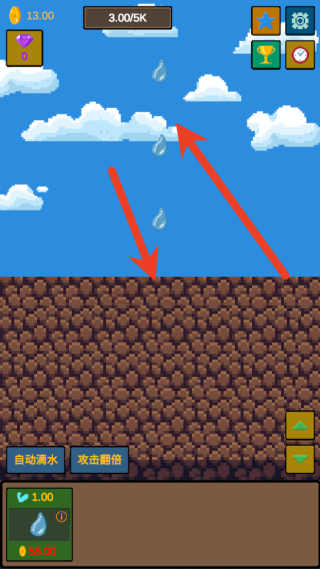 金币系统:通过点击水滴获得金币,金币可用于升级水滴和解锁道具,提升游戏的进展速度。