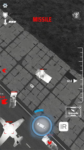 4、点击屏幕下方的“红色投弹”按钮即可投放炸弹。步兵会使用防空导弹进行防御,导弹具有跟踪效果。轰炸时,建议保持移动,避免悬停。