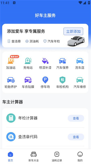 安装完成后,打开会看到首页展示的各类服务入口,包括充电桩、加油站、洗车和维修等。直接点击所需服务,快速进入相应功能。