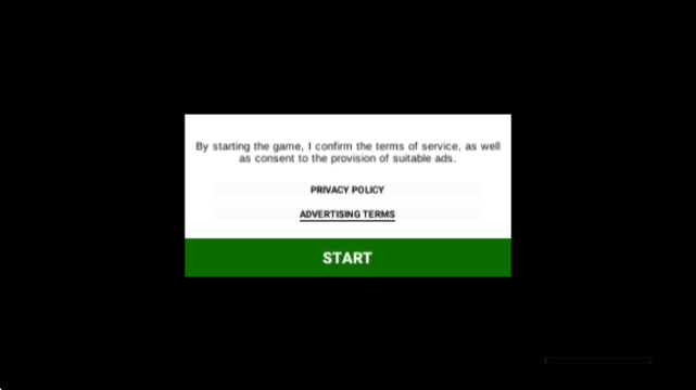 1. 初始界面会显示服务条款和广告协议,点击“START”按钮开始您的冒险。