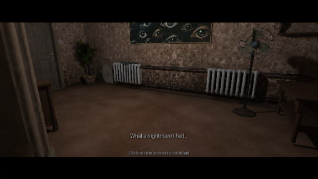 4. 进入房间后,屏幕上会显示“What a nightmare I had..”的剧情文字,点击屏幕继续游戏剧情。