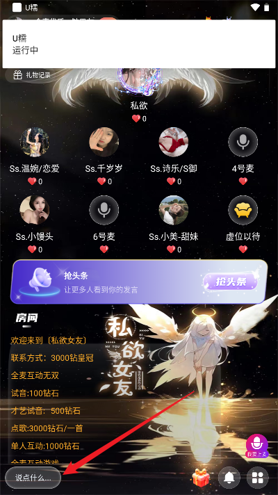 在登录成功后,浏览可用的语音房间,选择自己感兴趣的房间点击进入,即可参与聊天。