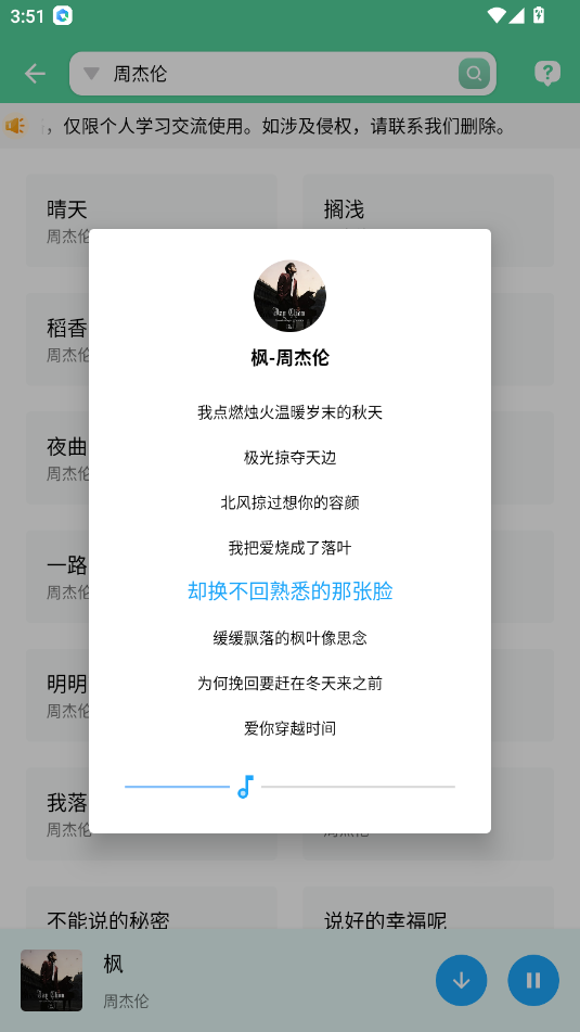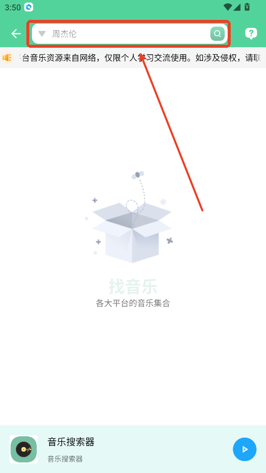 2.在上方输入音乐/歌手关键词点击搜索。