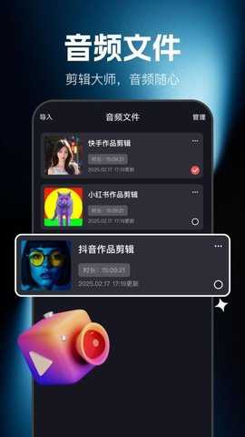音频剪辑:通过我要剪辑创作功能,轻松导入本地音频素材进行自由编辑。