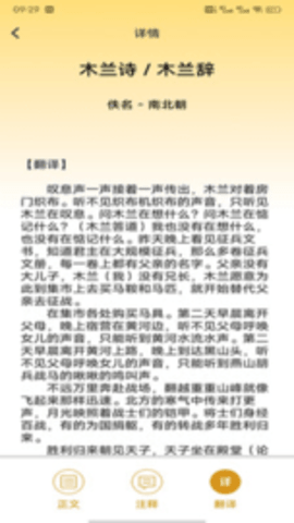 在首页,选择诗词查找功能,输入关键词或选择朝代、作者等筛选条件,迅速找到所需的诗词。点击进入后,查看诗词的全文、注释及翻译,帮助更好地理解作品。