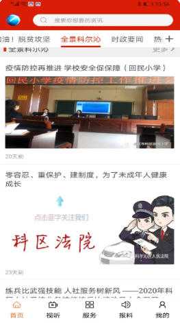 在本站下载科尔沁云软件后,可直接安装并打开,进入首页后会展示最新的新闻头条和热点专题,轻松了解科尔沁的大小事。