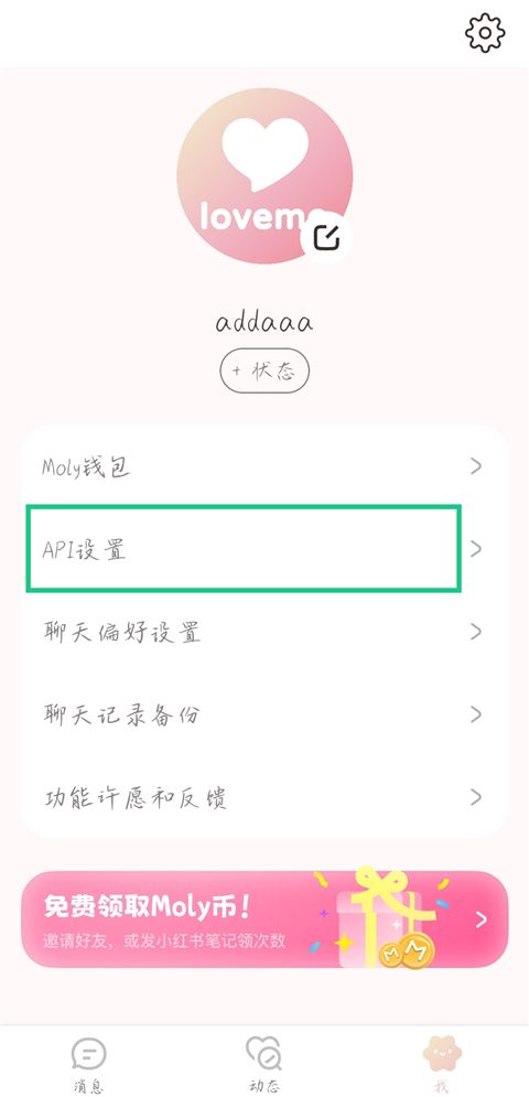 使用微信登录 Lovemo App 后,进入个人登录界面,点击【API 设置】。