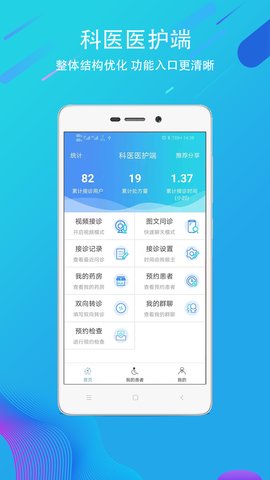 科医医护端是一款专为医护人员设计的高效办公工具,提升医生的工作效率和病患的就医体验。通过科医医护端最新版医生能够随时随地进行病患的在线问诊,灵活设置坐诊时间,更好地管理自己的工作安排。系统还提供详尽的问诊数据统计,帮助医生实时了解自己的工作情况,提升医疗服务的质量。