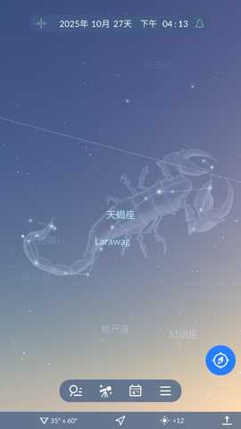 进入主界面后,看到一个360度的星空图。在这个界面中,通过手指滑动屏幕,查看不同方位的星空,点击感兴趣的天体以获取详细信息。