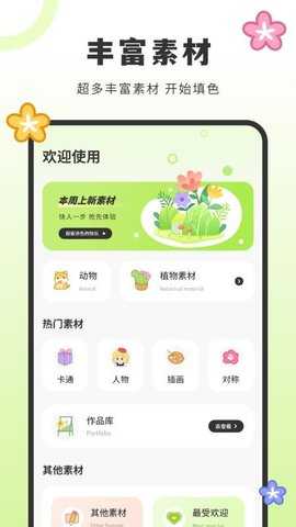 画填色是一款专为热爱绘画的朋友们打造的创作软件,在手机上自由绘制各种图画,软件中包含丰富的绘画工具,随心所欲地进行创作。在素材库中,找到多样的绘画素材,满足不同风格的需求,只需将所需素材添加到画板中,轻松拼接出独特的图画。用户还可以运用丰富的色彩为作品填充,灵感随时可得,创作过程充满乐趣。