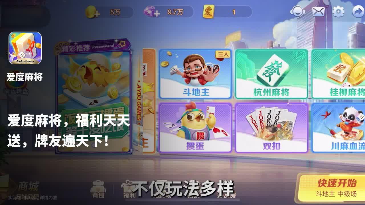 进入主界面后,点击选择爱度麻将,进入游戏选择界面。