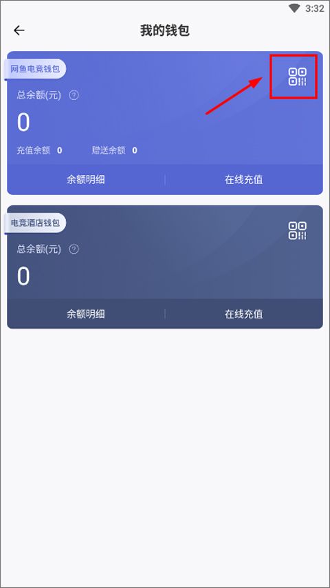 1、首先启动网鱼网咖App,点击右下角“我的”进入个人中心,登录账号后选择“钱包”;