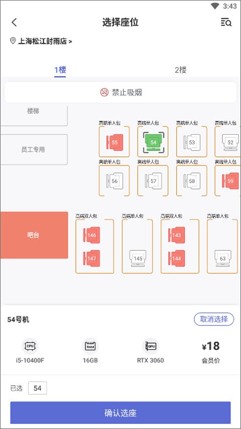 用户在选择门店后,点击智能订座功能,系统将显示可用座位,用户选择后确认即可完成预订。