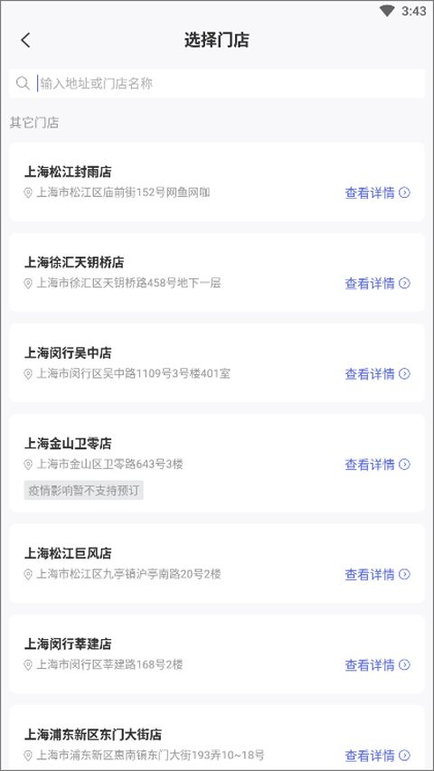 3、接着挑选附近的门店,可使用搜索功能快速定位;