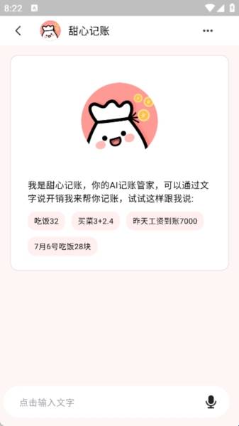 甜心记账app是一款创新的AI智能聊天记账工具,提供便捷且有趣的记账体验。甜心记账手机版通过独特的聊天形式,能够轻松记录自己的收支情况,系统会自动进行分类,有效简化管理流程。自定义记账角色,设置为自己喜欢的虚拟人物,使得记账过程变得更加生动有趣。支持AI聊天功能,让记账不再单调乏味,提升了使用的乐趣和互动性。
