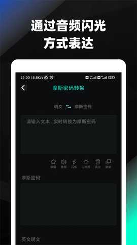 您可以通过点击保存按钮,将翻译结果保存到收藏夹中,便于后续查阅或学习。使用模拟发报功能时,您可以选择输入摩斯密码,点击发报按钮,软件将通过声音或闪光灯发送相应的摩斯信号,增强学习体验。