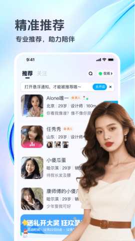 精准匹配功能:通过分析用户的个人资料和兴趣标签,智能算法能够推荐与用户偏好契合的对象,并支持附近的人筛选,方便快速建立联系。