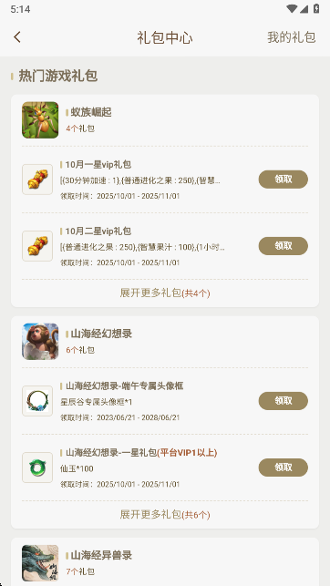 3、为大家提供了热门游戏礼包,用户可以领取。