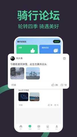 骑行动态发布:用户可发布个人骑行动态,附带骑行数据和照片,增强骑行分享的趣味性。
