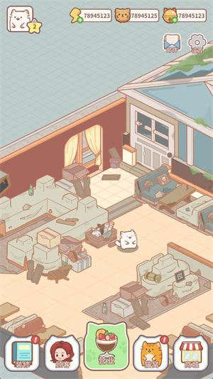 4、点击主界面的“装修”按钮,消耗一定数量的猫饼干更换餐厅装饰,可以选择不同蓝图来装修。