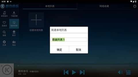 3、为自己的列表取名,否则系统自动默认歌曲列表1
