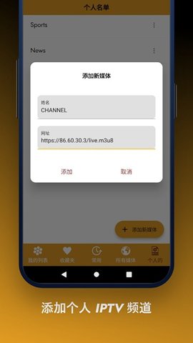 在主界面中选择我的列表,根据个人喜好添加或删除频道,可以按主题、语言或国家进行组织。