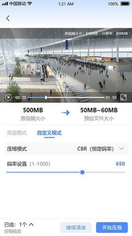 接下来选择压缩模式,选择简易压缩进行快速处理,或选择自定义压缩调整码率、分辨率等参数,以满足个性化需求。