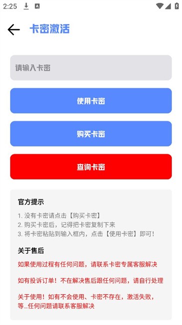 购买卡密后,复制卡密并在软件内输入到指定框中,点击【使用卡密】即可完成解锁,简单快捷。