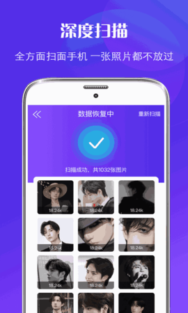 一键深度扫描:快速扫描手机内部存储和外部存储设备,全面寻找可恢复数据。