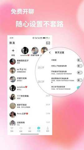 灵活隐私设置:提供多种隐私选项,自由设置聊天权限和动态可见范围,全方位保护个人隐私,确保社交体验的安全性。