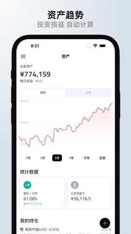 自动计算: 软件能够自动计算用户的投资盈亏情况,帮助用户及时掌握剩余资产与收益。