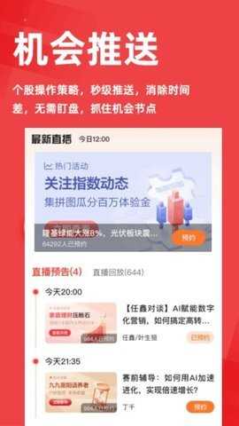 直播观看:用户可预约观看股票名师的直播课程,获取专业的投资指导和市场分析。