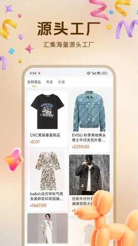 丰富的商品资源:平台汇聚了大量来自源头工厂的商品,涵盖男装、女装及配饰,满足不同消费者的需求。
