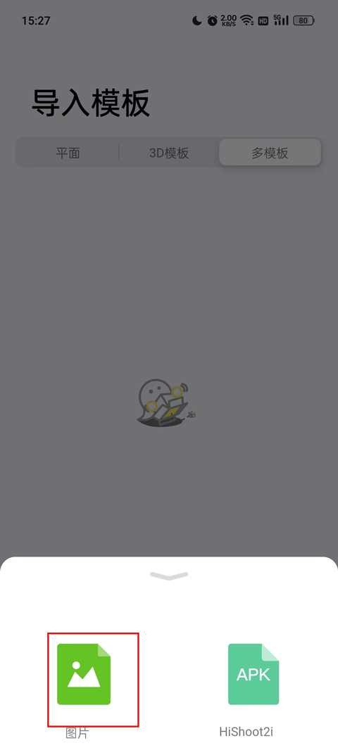 3、选择点击多模版选项,然后用手指向下滑动就可以添加一个模板;