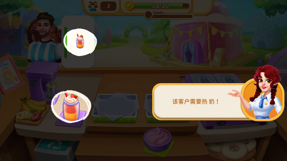 4. 不要忘记饮料!点击饮料机,为点了饮料的顾客提供饮品。
