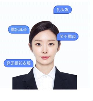 穿着整洁,避免帽衫、围巾和帽子。尽量扎起头发,露出耳朵,避免披发。建议化淡妆,保持微笑,避免露出牙齿。