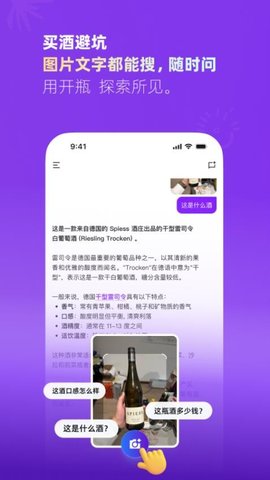 开瓶是一款基于人工智能技术的酒类选购辅助软件,能够通过图像识别和智能对话帮助消费者快速了解各类酒品信息,涵盖葡萄酒、白酒、黄酒等主流酒类,提供正品验证服务和完整的线上购买流程,让消费者在选购过程中获得专业指导,避免因信息不对称导致的消费决策失误,实现从知识获取到实际购买的无缝衔接。