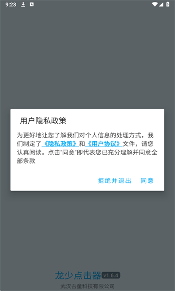 1、首先在本站下载并安装龙少点击器,并同意用户协议。